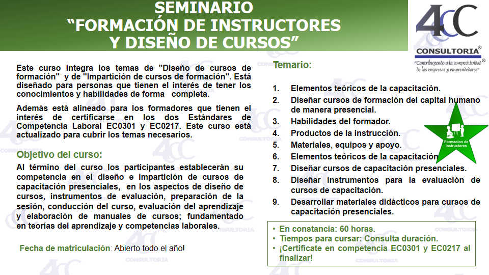 SEMINARIO DE FORMACIÓN DE INSTRUCTORES Y DISEÑO DE CURSOS